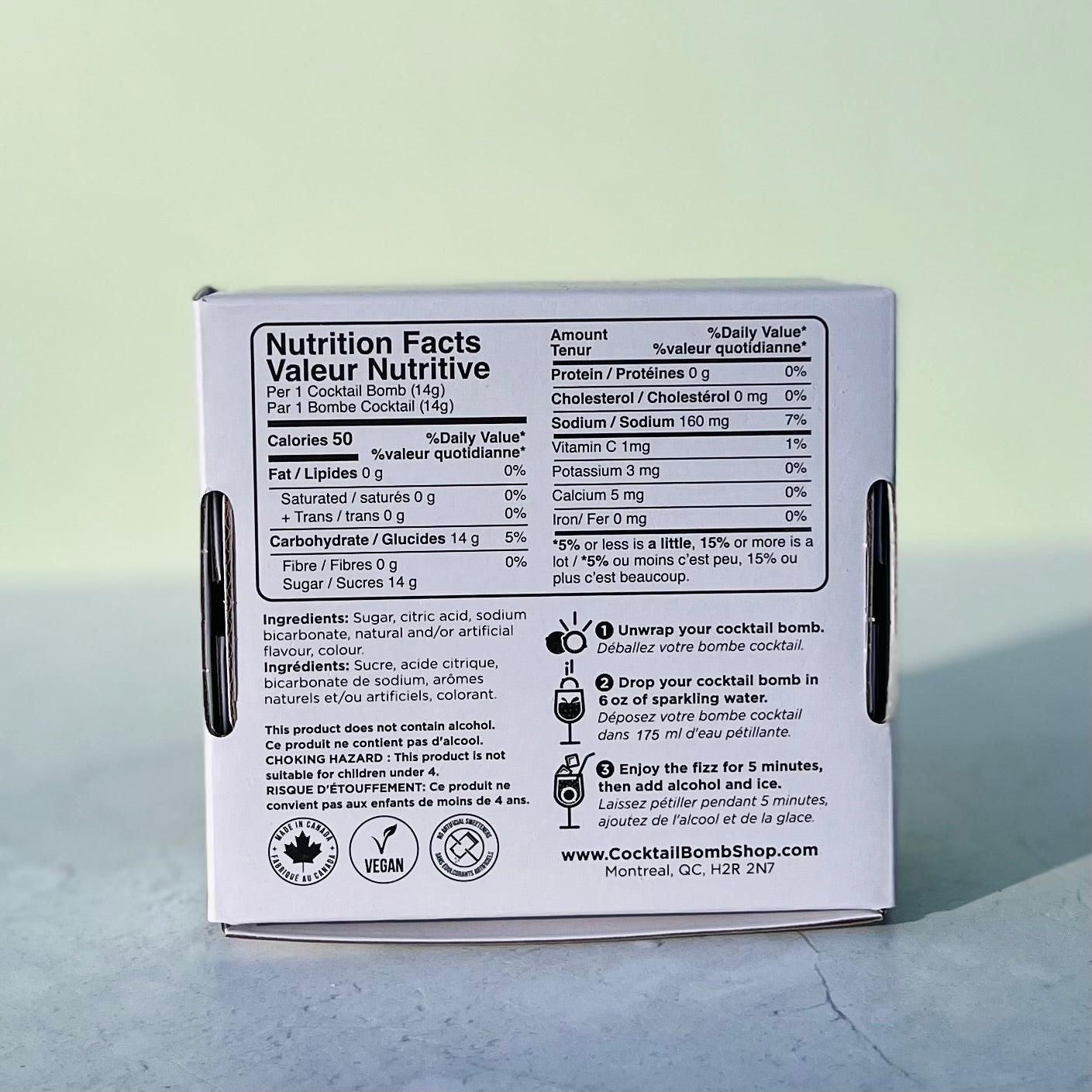 Notre bombe cocktail MARGARITA À LA FRAMBOISE offre un mélange rafraîchissant de citron vert et de framboises, parfait pour être dégusté pur ou mélangé avec de la tequila. Avec Cocktail Bomb Shop, préparer un cocktail ou un mocktail est aussi simple que trois étapes faciles. Levez votre verre au goût de l'été à chaque gorgée rafraîchissante !