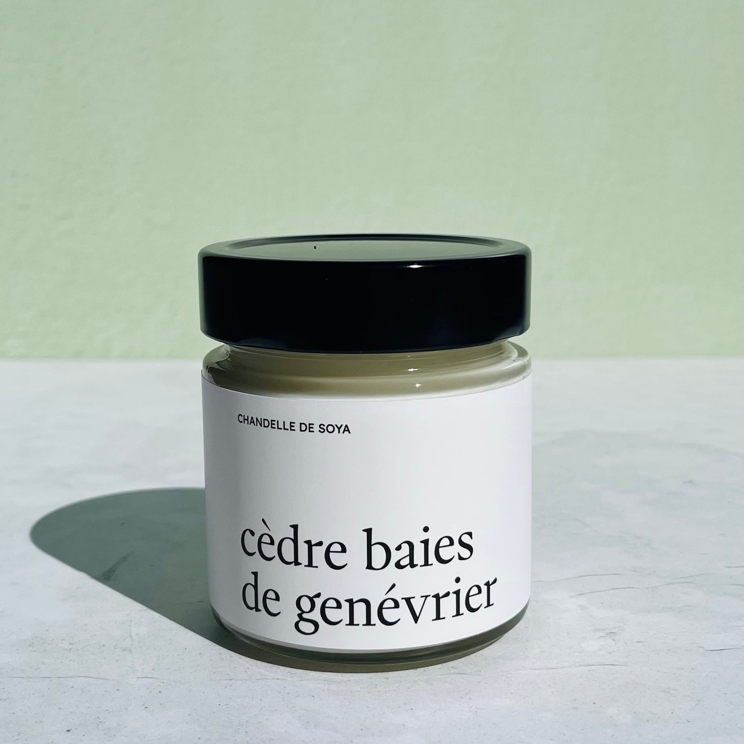 Découvrez la chandelle de soya Cèdre baies de genévrier, un mariage d'odeurs uniques qui dégagent un parfum harmonieux et complexe, à la fois frais, fruité et épicé.