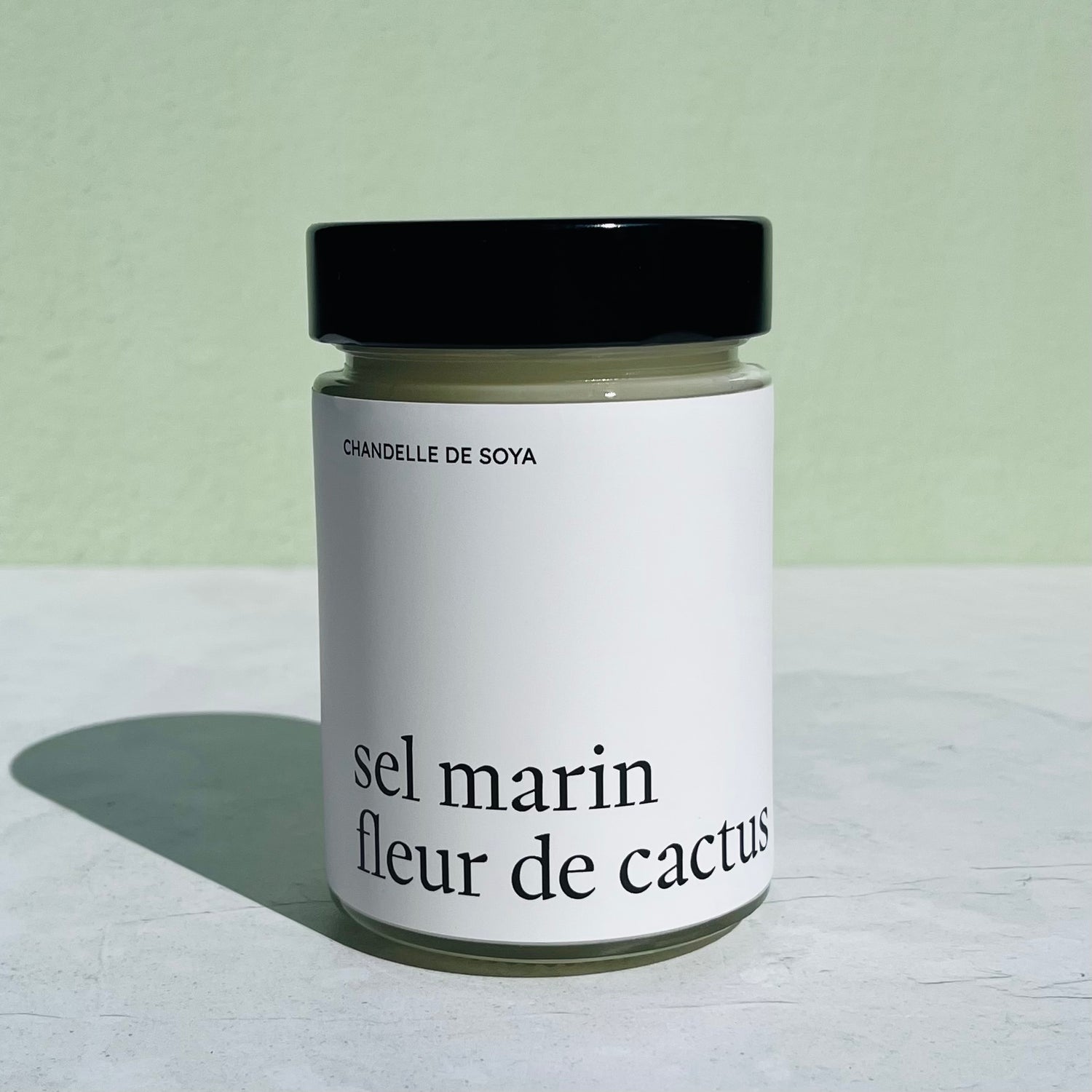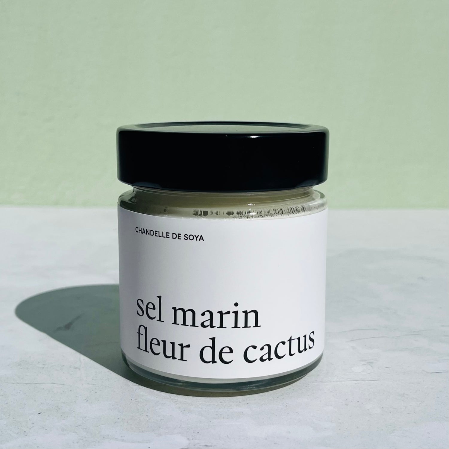 La chandelle de soya Sel marin et fleur de cactus vous invite à un voyage olfactif vers les rives ensoleillées, où l'air salin se mêle aux doux effluves des fleurs de cactus.