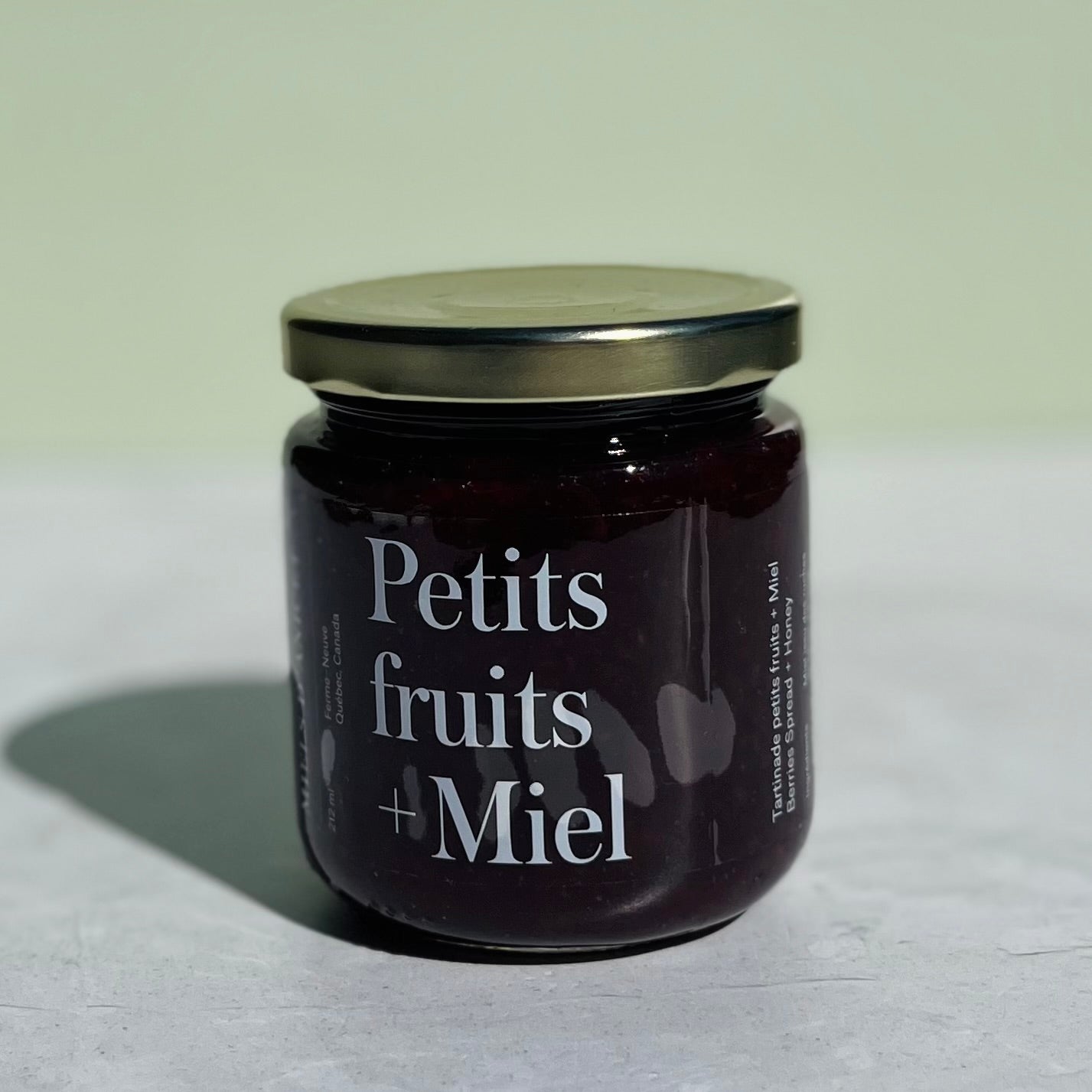 Tartinade résultant du mélange exquis de petits fruits combinés à notre miel d’été, doux et floral.