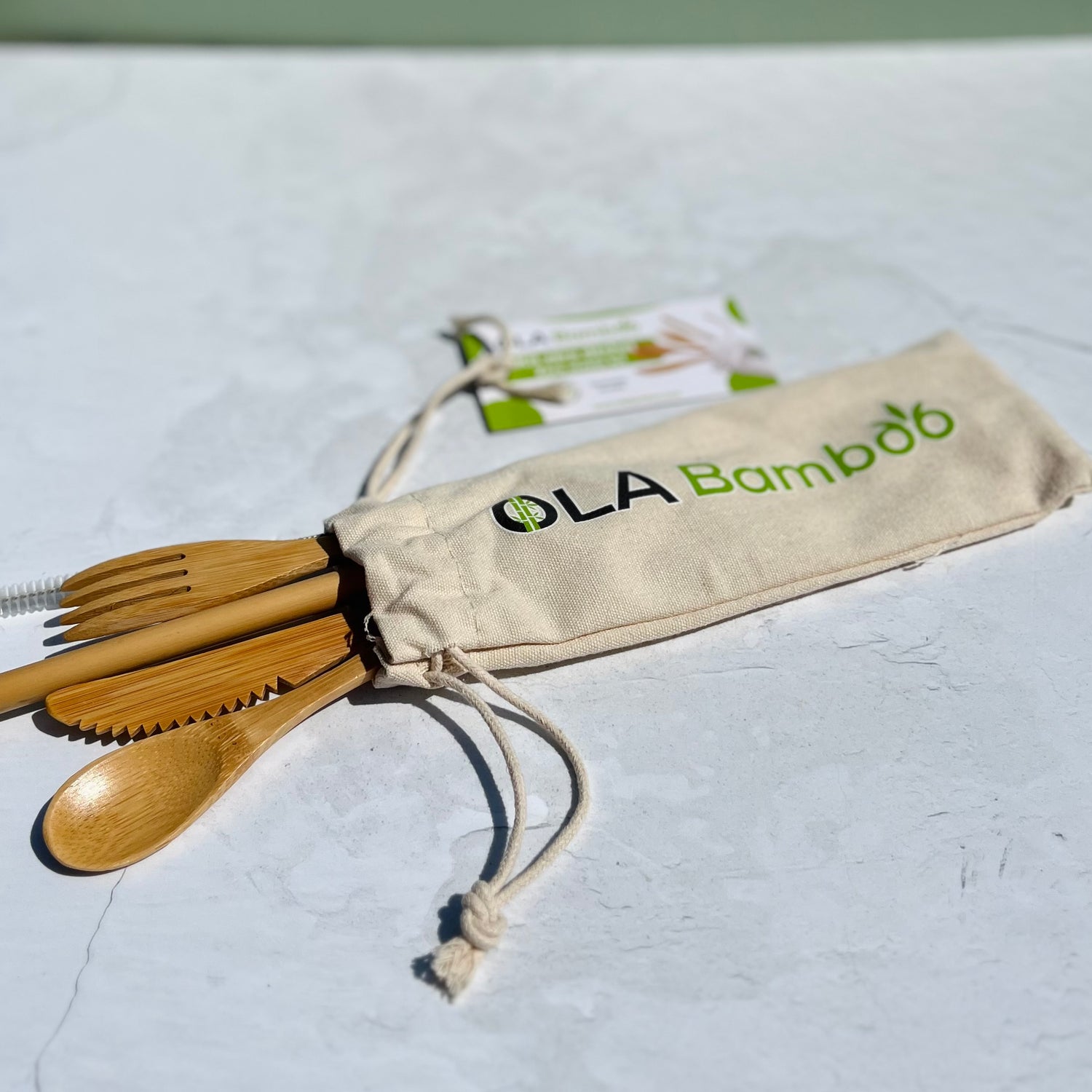 Ensemble d'ustensiles en bambou réutilisables