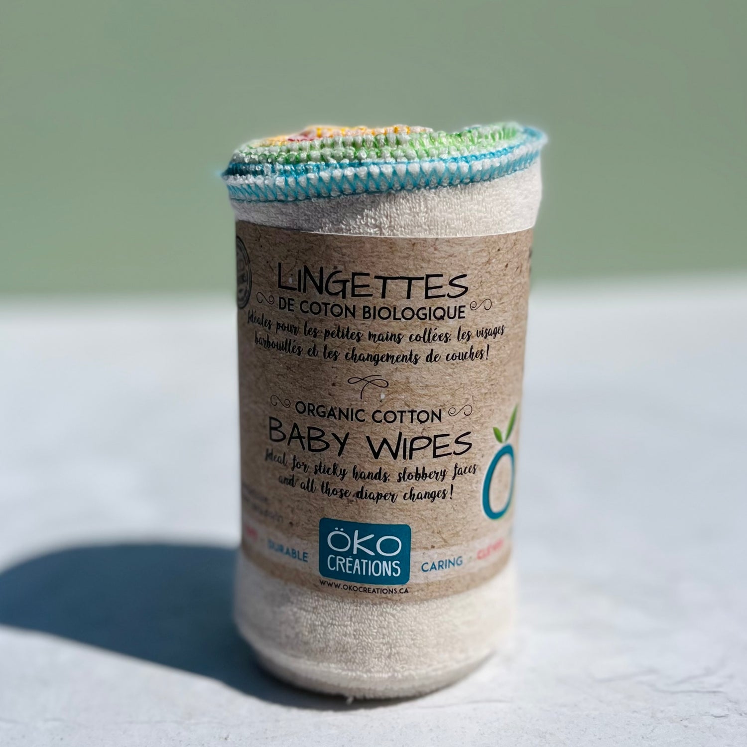 Les lingettes de coton biologique d'Öko Créations sont un indispensable pour une maison zéro déchet. Ultra douces et non blanchies, elles sont parfaites comme papier de toilette réutilisable et en duo avec un bidet ou pour les changements de couche!