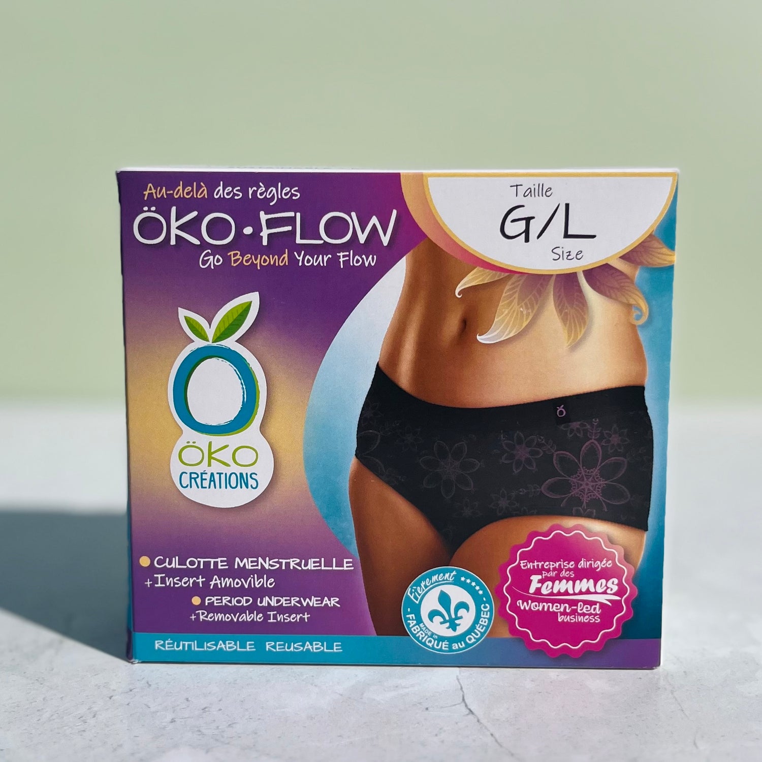 Fini le stress des fuites ou des débordements grâce à l'efficacité de la culotte menstruelle Öko-Flow; fièrement conçue et fabriquée au Québec par Öko Créations.