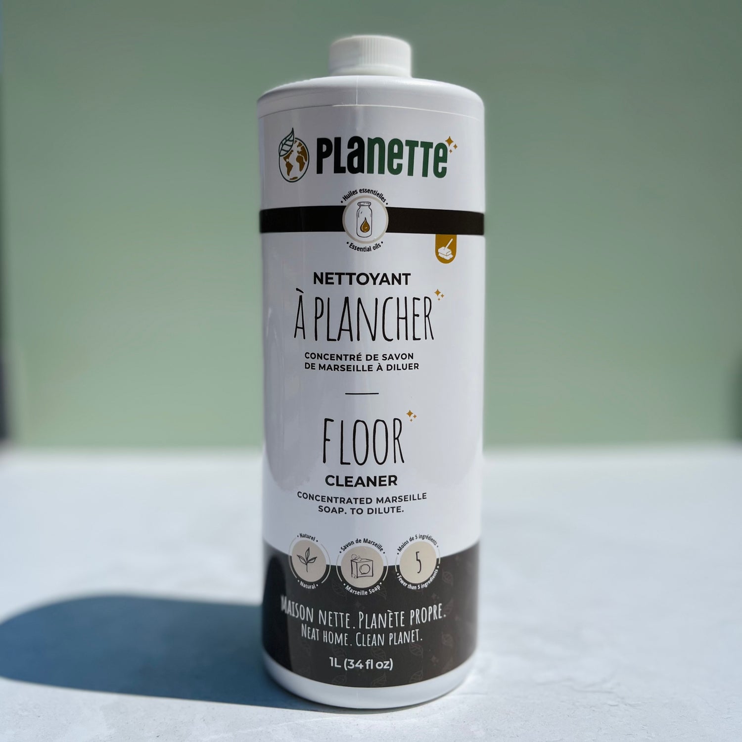 Notre savon à planchers naturel et écologique à base de savon de Marseille est un concentré qu’il faut diluer dans l’eau. Vous aurez besoin uniquement de 15ml à 30ml par chaudière d’eau! Ce produit ménager écologique est idéal pour laver toutes les surfaces étanches et peut être utilisé comme savon neutre pour laver la voiture ou les murs et plafonds!
