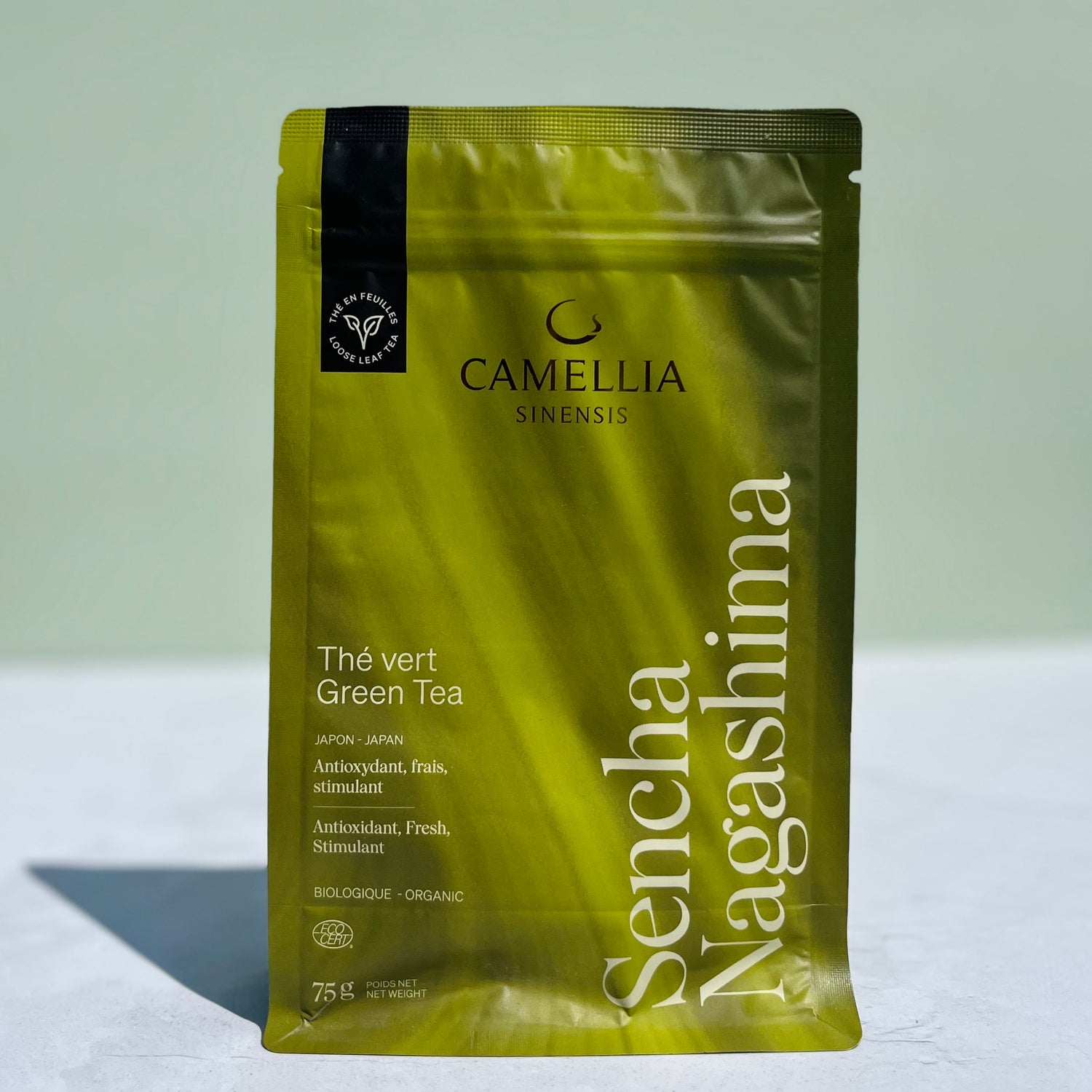 Les feuilles vertes foncées et lustrées de ce Sencha japonais offrent, une fois infusées, une liqueur jaune claire légèrement voilée. Pleine et douce, elle est végétale (légumes verts) et fruitée (zeste). Des notes de céréales grillées sont suivies d'une finale florale.