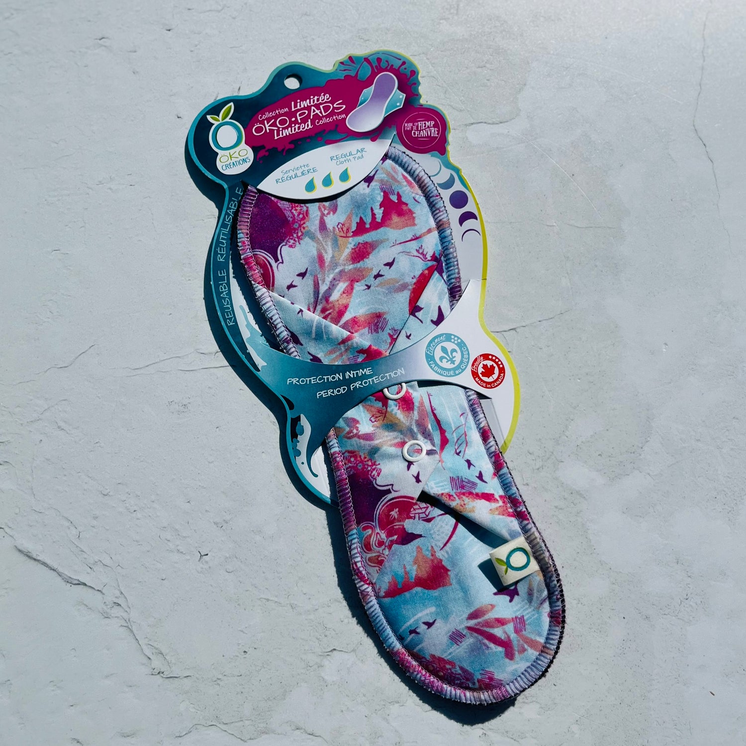 L'Öko-Régulier est une serviette menstruelle lavable. Elle offre une protection idéale pour les flux moyen à élevé pendant les règles, ou pour les petites pertes urinaires légères.